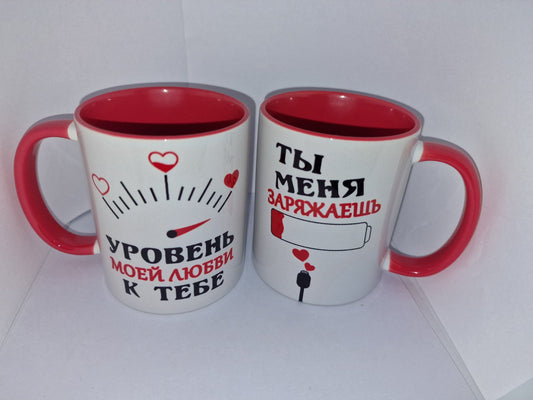 Набор кружек для двоих "Ты меня заряжаешь" и "Уровень моей любви к тебе", 2 кружки, 320 мл