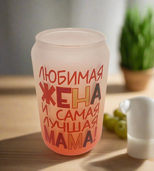 Стакан в виде пивной банки, стекло «Любимая жена и самая лучшая мама!», 400 мл