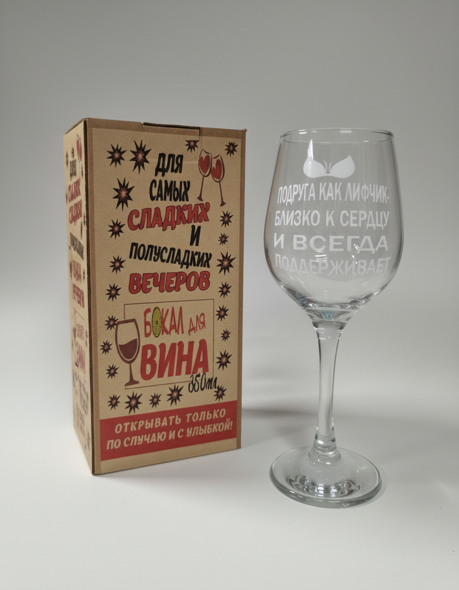 Ищете оригинальный и трогательный подарок для лучшей подруги? Бокал для вина с надписью «Подруга как лифчик — близко к сердцу и всегда поддерживает!» — идеальный способ сказать ей о вашей дружбе с юмором и теплом. Такой подарок точно поднимет настроение и станет любимым аксессуаром для уютных вечеров.