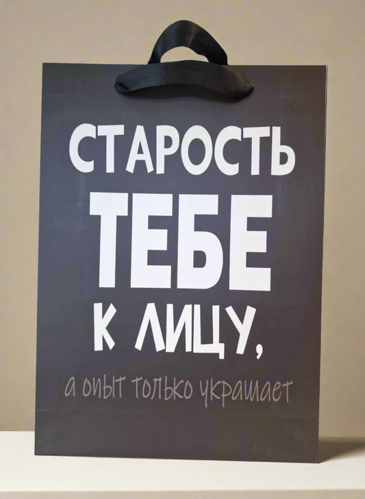 Вертикальный подарочный пакет "Старость тебе к лицу!"