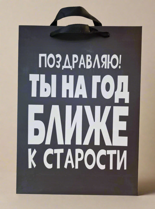 Вертикальный подарочный пакет "Поздравляю! Ты на год ближе к старости!"