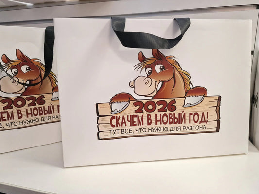 Подарочный новогодний пакет "2026! Скачем в Новый год!", 36 х 26 х 8 см
