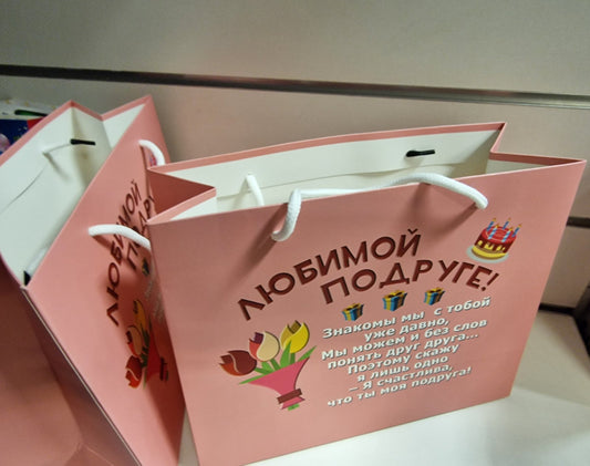 Элегантный подарочный пакет с яркой надписью "Любимой подруге!", 28 x 20 x 10 cм