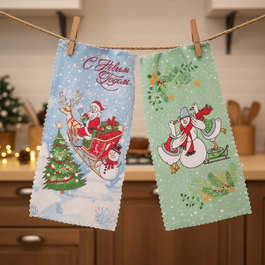 Кухонное полотенце из микрофибры с новогодним рисунком, набор 2 шт., 25 х 50 см